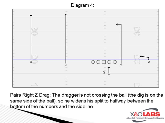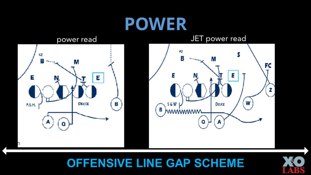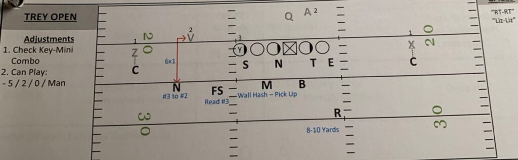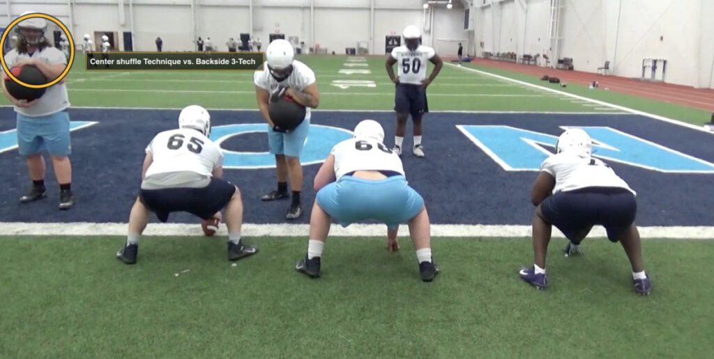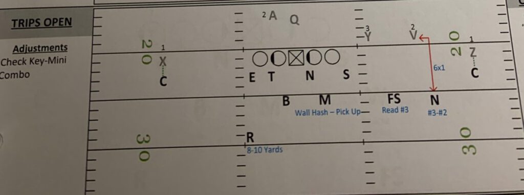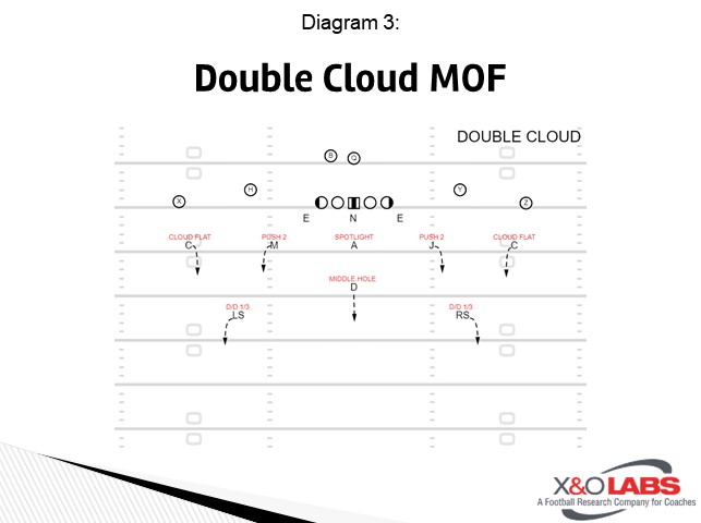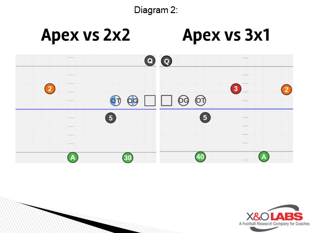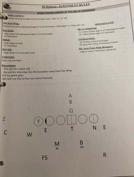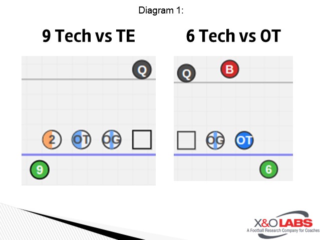 But if the blitzer is aligned to a three-surface formation, he is mandated to walk up and blitz from the edge to ensure that he cannot get sealed in the run game. “We don’t need to show it right away,” said Coach Foster. “But we can’t be in a position to get pinned.”