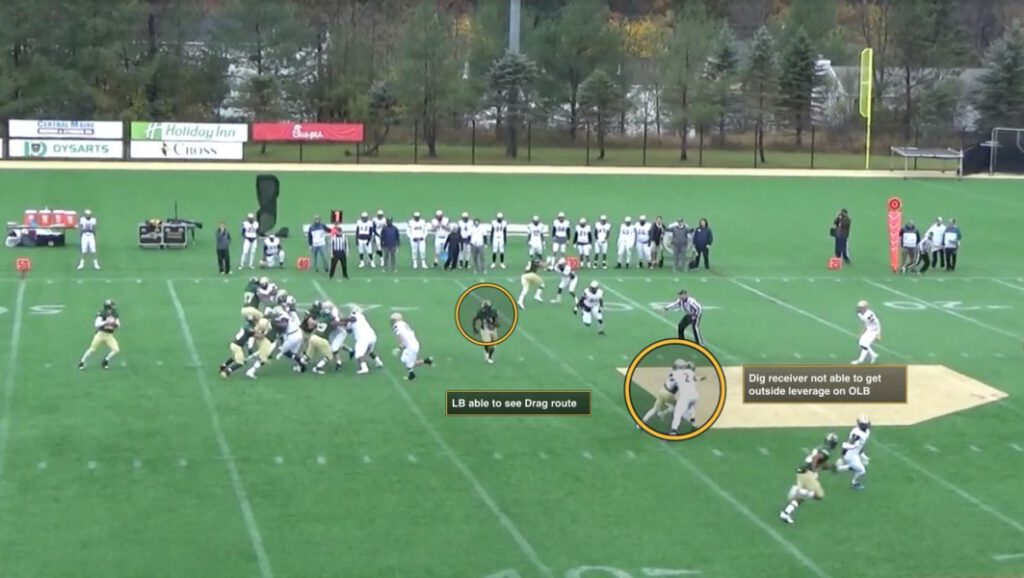 But now, here’s where his man pressure system progresses. Tango can often be used as a pressure check for any defender to pressure off a down tight end. Consider the scenarios below