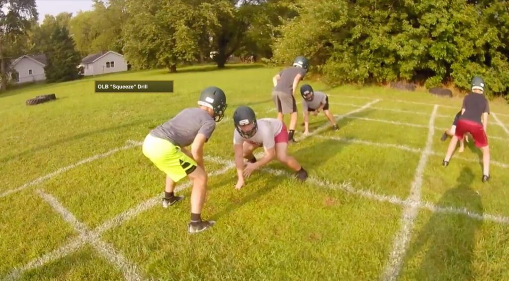 Since these are man pressure concepts, linebackers are told to gap fit and first-level defenders don’t wipe as they would in his zone pressure package (which is presented in the next ideology). Instead, the box linebacker not pressuring has an A gap to the ball responsibility.