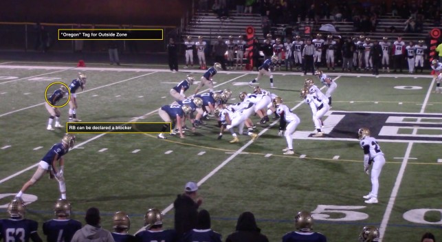 Also, from a run and pass protection perspective, the depth of the back, whether even, aligned 1×1, aligned wide and in front or any other alignments can be a pre-snap tell of pocket movement, play-action, or protection aspects. In both Diagrams 3 and 4, the RB is in what we call an “UP” alignment, which usually is a pre-snap tendency for either outside zone, power read or some sort of RPO or play-action off either run action.