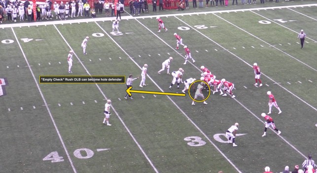 Over the past few seasons teams, especially in passing situations, have used 3×1 formations to out-leverage, out-formation, and establish situations where we have a conflict defender in an RPO read to attempt to get us to abort our pressure patterns and play a max coverage. To combat this, we have had to make some adjustments and checks to how we come after 3×1 formations without losing our pressure identity, especially in passing situations.