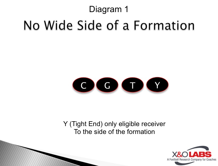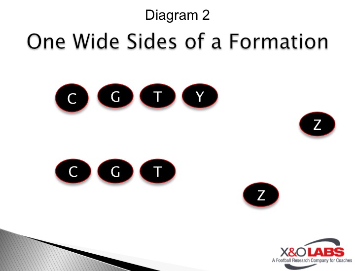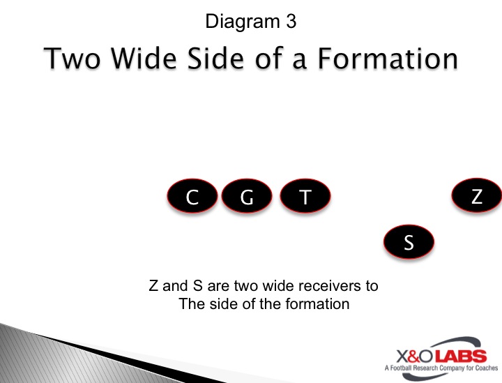 No Wide Variant (Diagram 1): No wide receiver to the side of the formation.  This can also be referenced as a “nub” side.