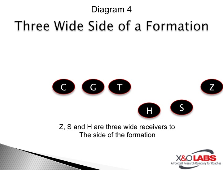 Triple Wide Variant (Diagram 4): Three wide receivers to the side of the formation.