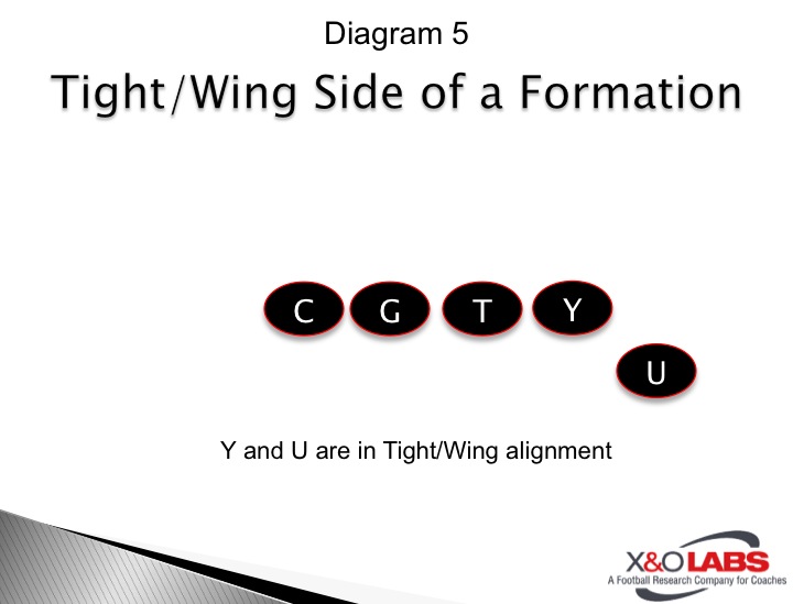 Wing Variant (Diagram 5): Tight End/Wing to the side of the formation.