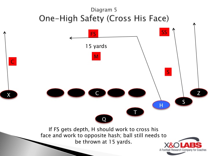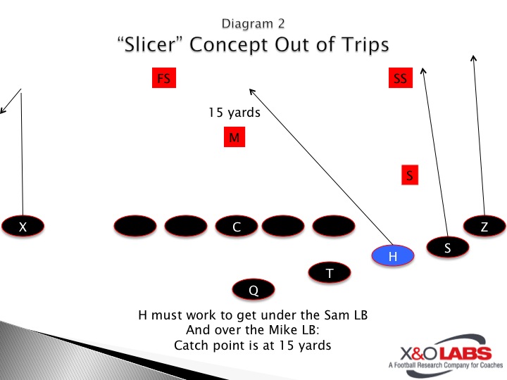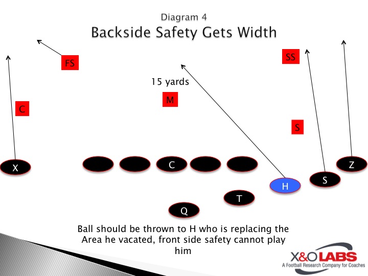 JM: Unless the defensive team does a lot of stemming, I’m not sure that you should vary your splits. If two guys have to work together I don’t care if they get foot to foot. So much of offenses now are double teams and combo blocks. Well, get foot to foot so that you can execute the block. The guard sets the integrity of the split. The defense may know something is up, but they don’t necessarily know that you’re on the backside of a zone play or the front side of a double team play. If my backside guard is pulling on the power play I don’t care where he lines up. Just get off the ball. You may have a bootleg, reverse or naked where that guard pulls. Do what you have to do to get the job done. Conversely, if the backside is off the line of scrimmage, the front side should be on. They need to be able to maneuver their blocks or the pulling guard may not be able to see his assignment if the front side gets knocked off the ball. The pulling guard has more time and space to see his assignment.