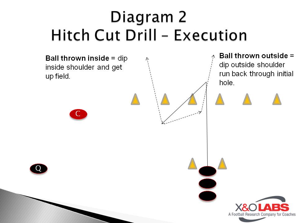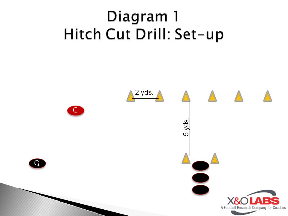 Alignment and stance must be addressed first. Everything in the following report will be discussed out of a Cover-0 look. When we are pressing, we will align with an inside shade (defender’s nose to receiver’s inside ear) (Figure 1). I like to use the nose-to-ear as a starting point because it allows my defenders to have a comfortable base with their feet. Some players are naturally wider and longer than others, and some guys are quicker and more explosive with a wider stance. We want to squeeze the line of scrimmage as much as possible, or get as close to being off-sides as we can if the wide receiver is ‘on’ the line. If he is ‘off’, we will align further away from the line of scrimmage and move inside more than usual. I want our defensive backs in a comfortable stance: knees slightly bent, butt behind, eyes up, arms loose (Figure 2). Putting the butt behind the defender allows more room to keep the receiver in front of the defender. It is going to take more steps and work for the wide out to get behind the defender.