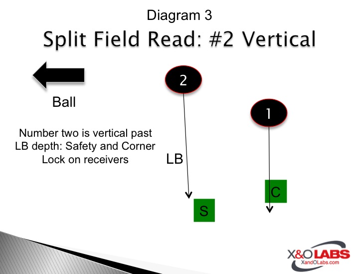 • If number two is vertical (past linebacker depth) stay on number one (Diagram 3).