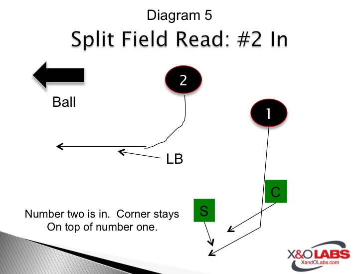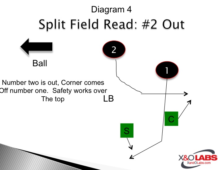 One answer to this formation is to play what amounts to a Soft Cover Two check against two receivers to one side of the formation.   This essentially protects defenses against the threat of number two on a wheel or flat breaking route because the Corner will play any number two receiver on an out-breaking route.  It’s called "two read" because both the Safety and Corner are reading number two based on his release.  His release can be all of the following variants.