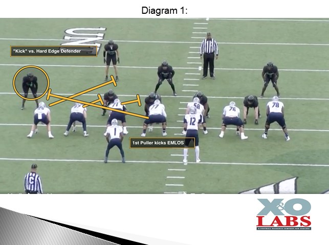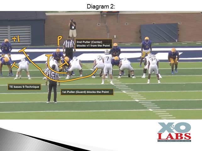 So, essentially, it’s the Guard who needs to figure out if he’s the first or second puller. “Pullers need to know if they are the first puller or the second puller and if they are responsible for the point or plus one of the point,” said Coach Sanders. “If you know those two things, you can block this play a ton of different ways.”